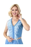 Modatalika Kadın Taş Ve Tüy Detaylı Bol Paça Şık Ve Spor İkili Takım