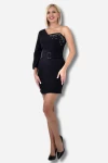 Modatalika Kadın Tek Omuz Boncuk İşlemeli Kemer Aksesuar Detaylı Mini Elbise