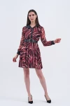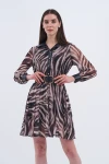 Zebra desenli, uzun kollu ve diz üstü boyda olan bu elbise, şıklığı ve rahatlığı bir arada sunuyor.